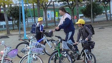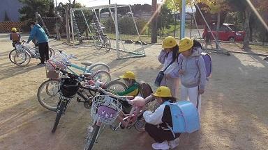 自転車のカギをかけるのに苦戦している子が多くみられました。自転車点検では、タイヤの空気が十分入っていない自転車もありました。新たなチャレンジで、気づくこと、学ぶことはあるものだと改めて感じています。自転車安全教室を行うにあたって、各家庭のご協力に心よr感謝申し上げます。