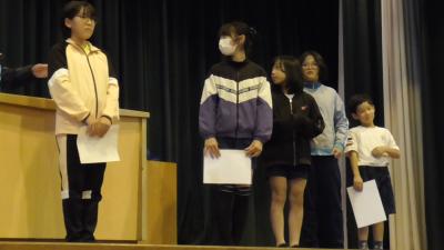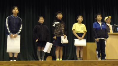 世界へ、未来へはばたく磯辺っ子! 11月13日全校集会表彰披露
