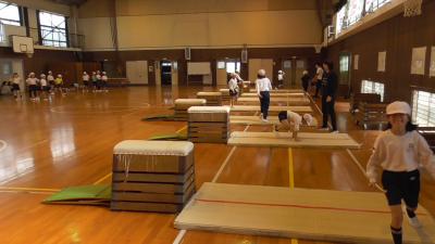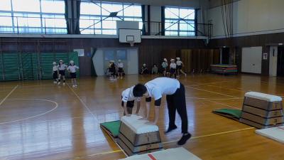体育発表会が終わり、体育館も使用できるようになり、2年生の体育では跳び箱の授業を行っています。現在は、どの学の体育では、体育館の使用割り当てがある日は跳び箱を行っています。そのため、1時間目に跳び箱をセットし、6時間目の学級が片付ける毎日です。