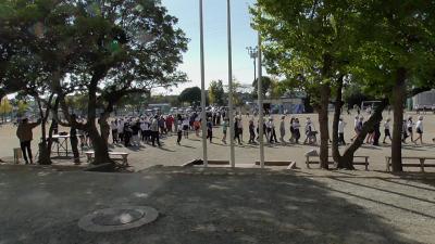 運動場のトラックを2周走った後に、むくろじの木の横を通り、南校舎と中校舎の間を走り抜けます。