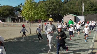磯辺保育園の横を通るときには、小学生の走りに気づいた園児さんたちが「がんばれー」と応援してくれます。苦しいときの園児の励ましの声に元気づけられます。ありがとうございます。