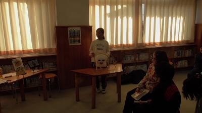 6年児童には、当日発表した作文を読んでもらいました。日本文を読むことに戸惑っていた自分をサポートしてくれた先生の優やさしさに触れ、人に思いやりをもって接することの大切さを学んだ経験を話してくれました。