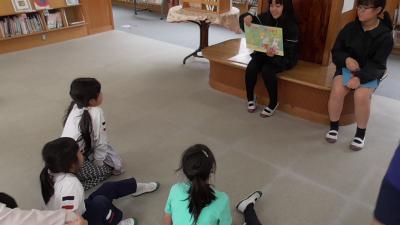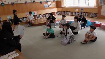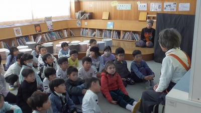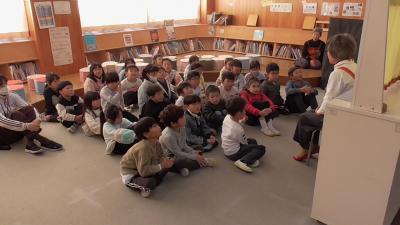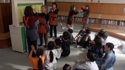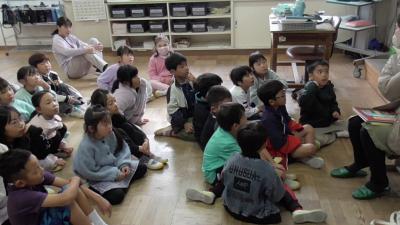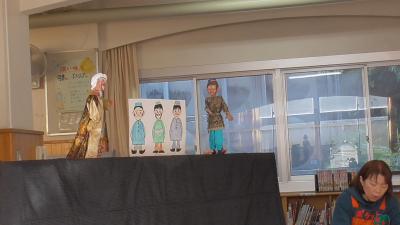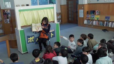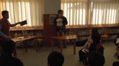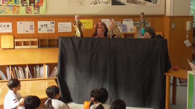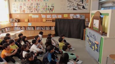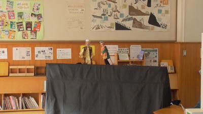 1年生も「ハバールと王様」の人形劇を堪能しました。1人で何役もこなす読み手のボランティアさんお声色の七変化は本当に見事です。