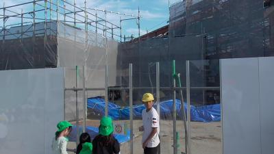 3年生が育てているダイコンの水やりについていくと、たまげました。先週まで、体育館前の畑を取り囲んでいた草木がきれいに刈り取られていました。とっても広々とした、新たに完成するコスモスのクラブハウスも全体が見通せます。お手伝いした子もちょうど水やりにおり、日曜日にすべて行ったそうです。磯辺のすごいマンパワーを実感しました。