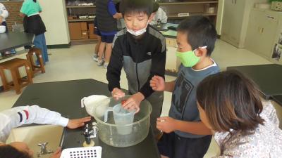 学習指導要領が目ざす「深い学び」を実現するには、感情が揺さぶられる「体験」が必要となります。ある日、廊下を歩いていると楽しそうな子どもたちの声がするのでそこを訪ねてみると、4年生が理科の実験をしているところでした。