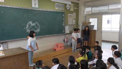 続いては、「きつねとかわうそ」の朗読です。かわうそくんが行った仕返しは、水が氷に代わる理科の実験を思い出されます。