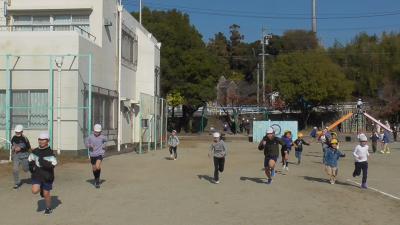 12月18日に予定されている「ランランチャレンジ」の「チャレンジ部門(800m)」を希望する有志児童がコース試走&2度目のタイム測定にチャレンジしました。