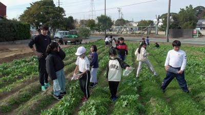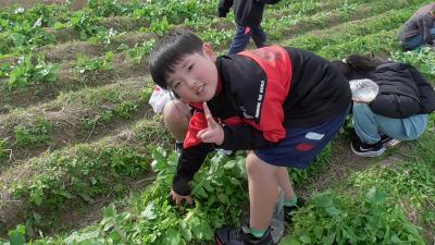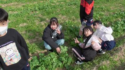 3年生のダイコンも順調に成長し、ダイコンの頭の部分が土から出ているものもいくつか見ることができました。
