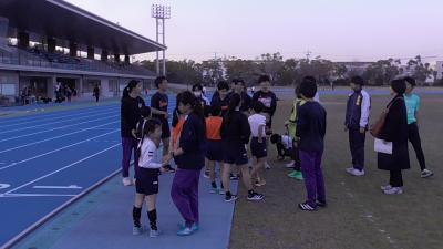 3月17日の17時から改修工事が終了し、この日から使用が可能となった豊橋市陸上競技場で、コミュニティ・スクール主催の「陸上教室」が開催されました。3月21日(土)に行われる「鈴木亜由子杯 穂の国ハーフマラソン 小学生600m競争」に出場するいそべっ子の応援企画です。11名の磯辺小児童と1名の南陽中1年生が参加し、13名の豊橋南高校陸上競技部中長距離部チームの高校生がサポートしてくれました。まさにマンツーマン指導で、とってもよい機会でした。