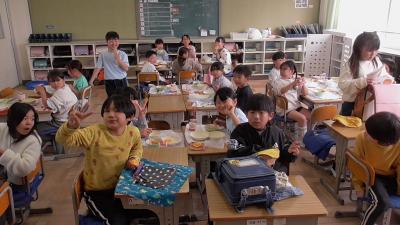 今日は13時10分から、いつも子どもたちの登下校や放課後の安全を守ってくれている「見守り隊」「見回り隊」「PTA安全委員」「PTA執行委員」のボランティアさんによる第3回「見守り見回り全体会」があり、この来校の機会に給食交流を行っていただきました。楽しい給食の時間を一緒に過ごすことができました。