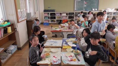来年度の6年生と一緒にいただきますをして、給食のスタートです。