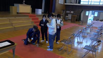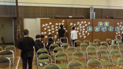 卒業式の晴れ舞台が整いました。 5年生卒業式会場準備