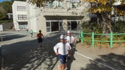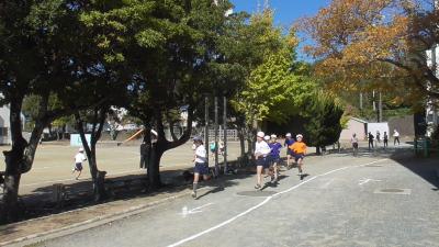 12月18日に予定されている「ランランチャレンジ」の「チャレンジ部門(800m)」を希望する有志児童がコース試走&2度目のタイム測定にチャレンジしました。