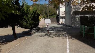 運動場のトラックを2周走った後に、むくろじの木の横を通り、南校舎と中校舎の間を走り抜けます。