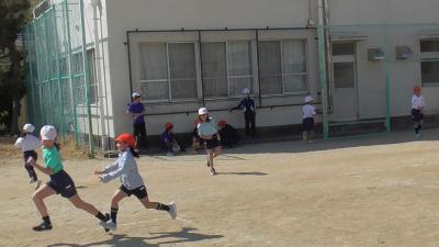 磯辺っ子と言えば、やっぱり鬼ごっこが人気です。クラスみんなで外に出て、楽しいおに後kkkpとのはじまりのようです。
