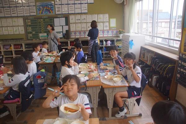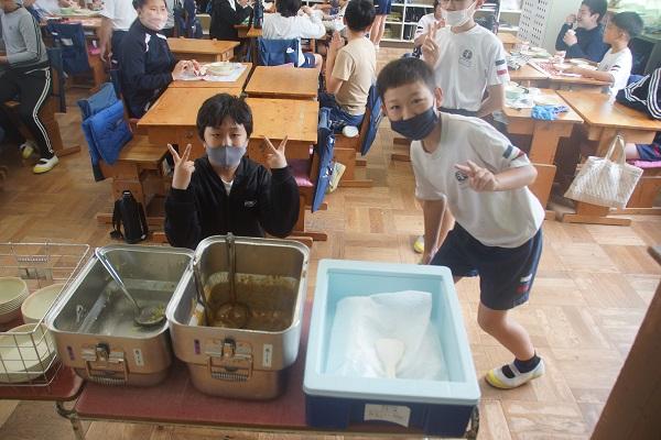 米粉のクリームシチューは、磯辺小2年生の好きな給食ランキングには登場しないけれども、ほとんどのクラスで食缶は空っぽでした。うましでした。