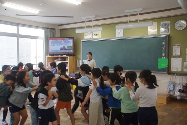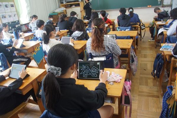 登校時には、空全体を雲が覆っていましたが、2年生が緑地方面方面へ校区探検に出かける頃には、南西方面は雲一つない青空になってきました。今日は、1年で一番大きな満月のスーパームーンがお目見えする日です。夕方6時前から大きなお月様が東から昇ってくることに、期待が膨らんできました。