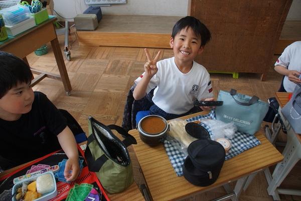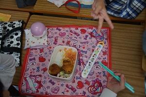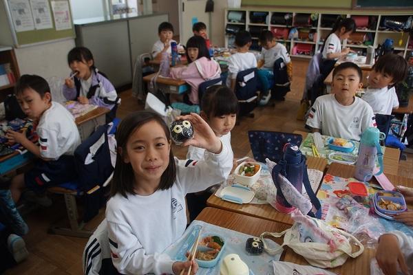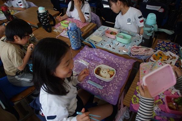 今日の給食メニューは、5年生をはじめとして、いつもがんばっている磯辺っ子へのごほうびメニューのようで、米粉のカレーあんかけ白玉うどん、(小麦抜き)チキンハムカツ、牛乳に、小魚がつきました。5年生が幸せそうに給食を食べる姿を見ていると、こちらまでほっこりしてきます。カレーが飛ぶことさえ気をつければ、今日も気分はサイコーな給食時間となりました。キャベツまで残さず食べてくれてありがとう。