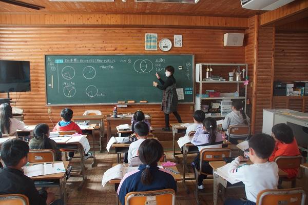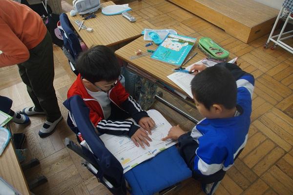 最初に、自己紹介が行われました。磯辺小は、向山小、豊南小、多米小、津田小と同じグループで交流を深めました。