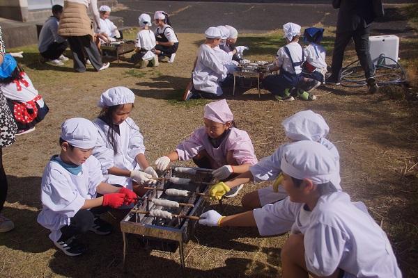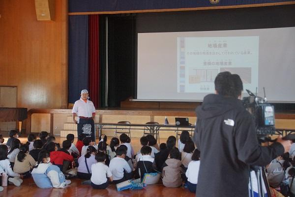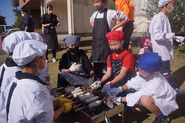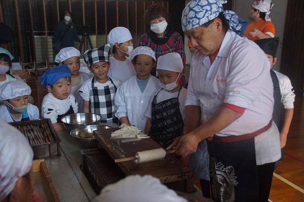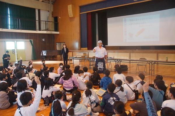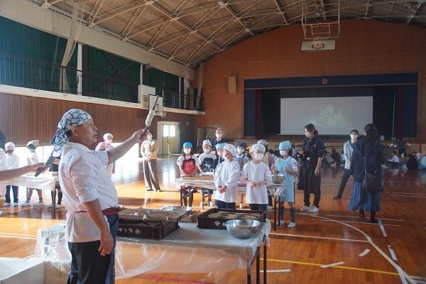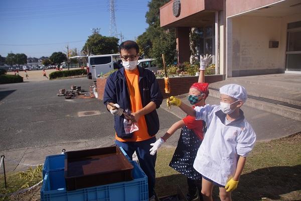 栄養教諭さんが給食センターから帰ってきたところに、1年生が集まって「作り方を教えてください。」とお願いしていました。すばらしい学びとなりそうです。