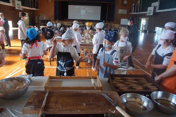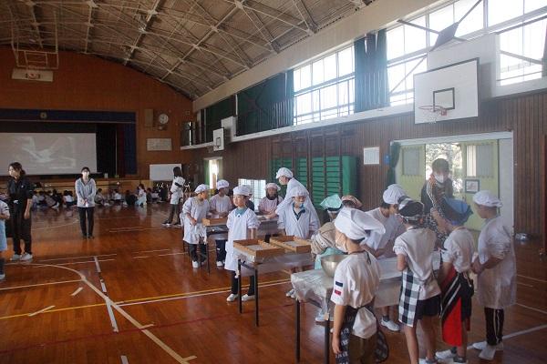 ひまわり学級で行われているパン教室にお邪魔しました。今日も上級生と下級生がペアとなって、仲良くパン作りにチャレンジしてくれています。