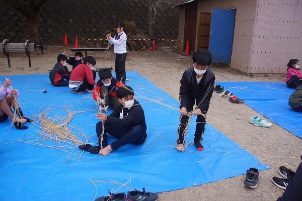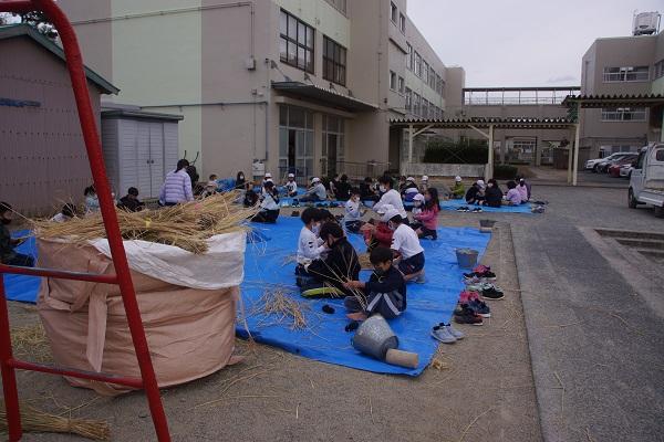 4年 稲作体験 昔の道具で脱穀に挑戦