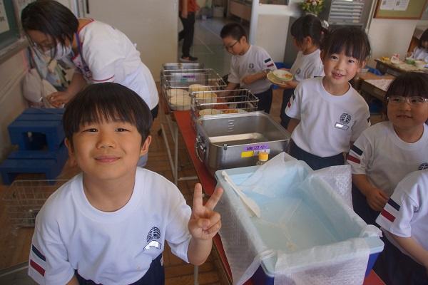 今日の午前中は、断続的に強い雨が降っていました。明日は、5年生が校外学習に出かけるので、雨もほどほどにしておいてほしいと願うばかりです。明日の給食は、ちくわのいそべ揚げ(2こ)、豚汁、くりとさつまいもの甘辛煮、ごはん、牛乳です。5年生は、明日、校外学習(バス)で、弁当持ちなので、このメニューは食べることができません。いそべ揚げろ豚汁は、比較的好きな子が多い人気のメニューなので、ちょっぴりくやしそうでしたが、愛情たっぷりの弁当だからと、気持ちを切り替えていました。明後日は、6年生が観劇にプラットへ出かけるので、お弁当持ちです。
