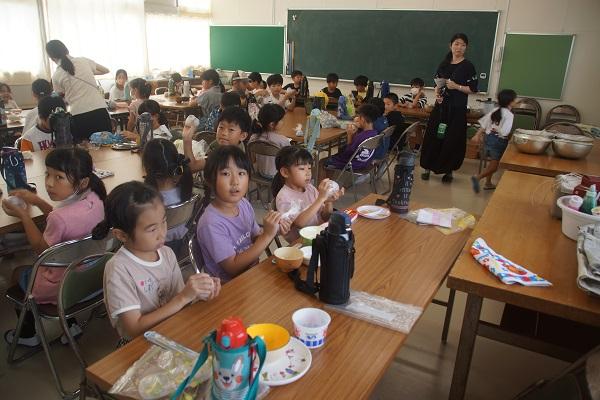 5年生の子どもたちは、2種類のみそ汁の味の違いを味わっていました。私には、どちらもおいしく感じましたが、味覚の繊細な子どもたちは、煮干のだしの違いが理解できたようで下。さすがです。