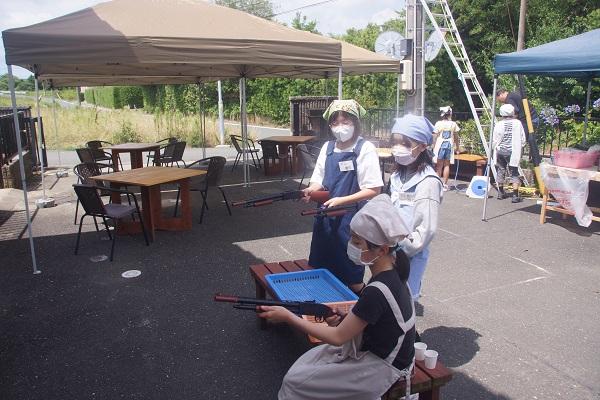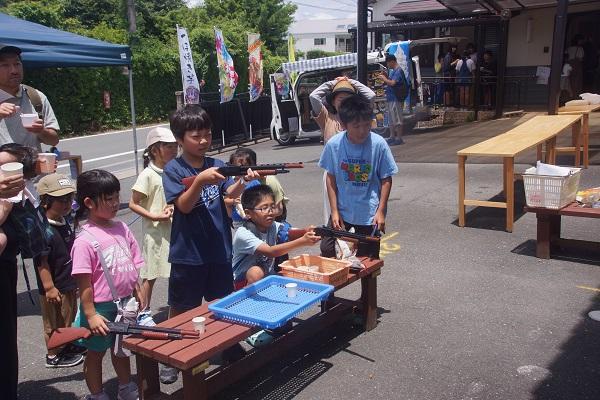 射的もよくできていました。割りばしでできた発射台を軽く握るだけの、これも簡単なゲームです。安全にも気を使いながら、うまく声かけができているなと感心しました。