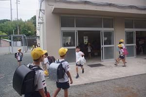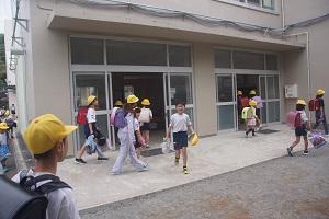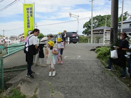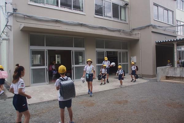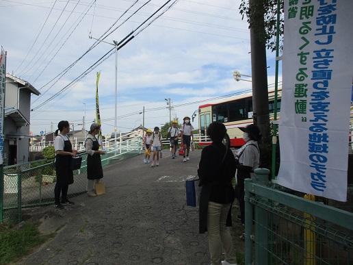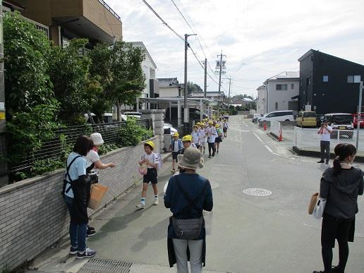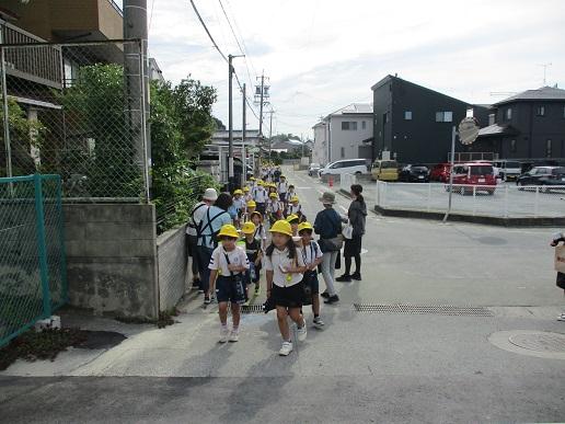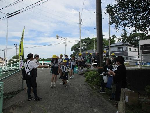 学校から高師駅までの道のりは、通学路にしている子どもおり見慣れた景色のようですが、社会科の豊橋オリジナル副読本「かがやく豊橋」の「火事からくらしを守る」の学習を兼ねて、道中にある「消火器」や「消火栓」を探しながら歩いたので、見慣れたまちの違う一面にも気づくことができたと思います。