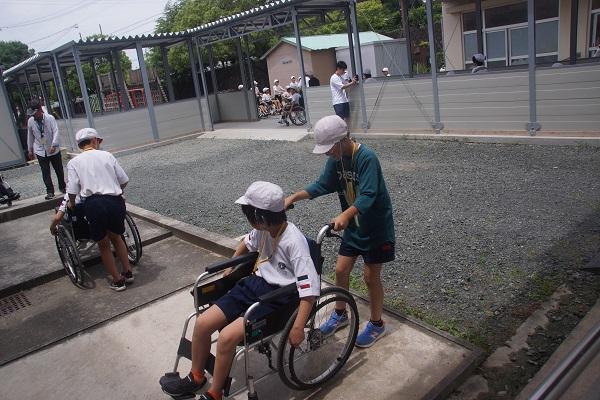 1年生は図工でうちわで風を送ると前?に進むおもちゃの制作をしていました。