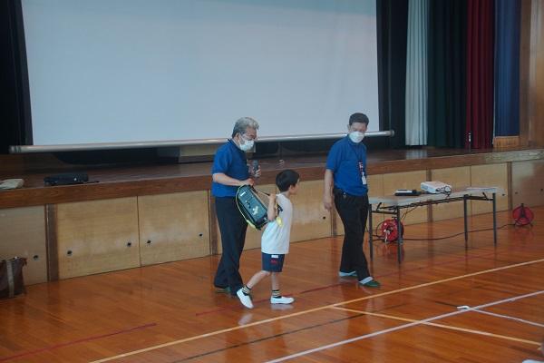 消防署では、消防隊員や救助隊員の方々から、火事の現場で使用する衣服や用具の説明を受けたり、中消防署にある車両の説明を受けたりしました。15キロ以上の装備を背負って、火災現場を全力疾走する隊員の皆様の体力やそれに備えた訓練について、子どもたちも驚いていました。この見学が「将来、消防隊員になりたい」と思うきっかけとなる子もきっといるんだと思いました。みなさんとってもかっこよかったです。