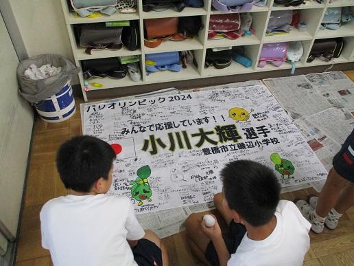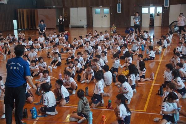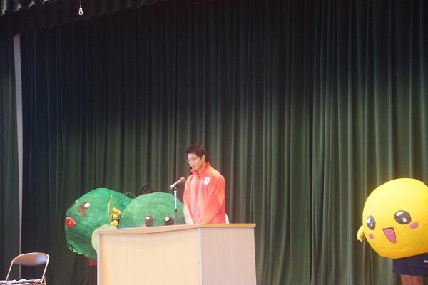 校長講話では、2025年9月の東京世界陸上に向けてがんばっている吉津拓歩選手や十両昇進に向けて幕下でがんばっている金沢秀俊さん(しこ名「玉欧山」)などの磯辺小の先輩方を見習って、4月から始まる新生活への準備期間として、充実した3学期としてほしいとお話しました。