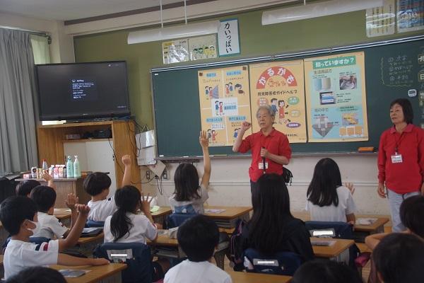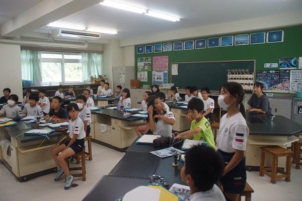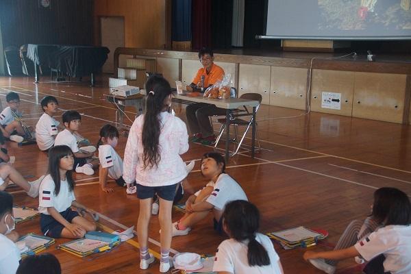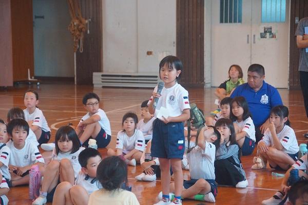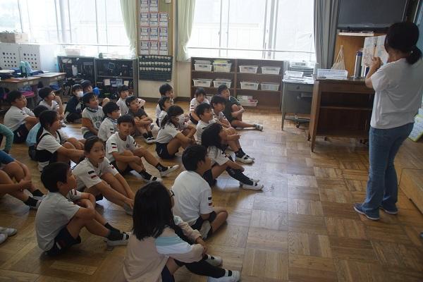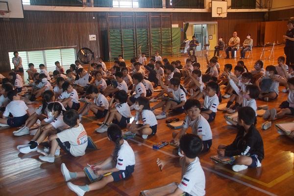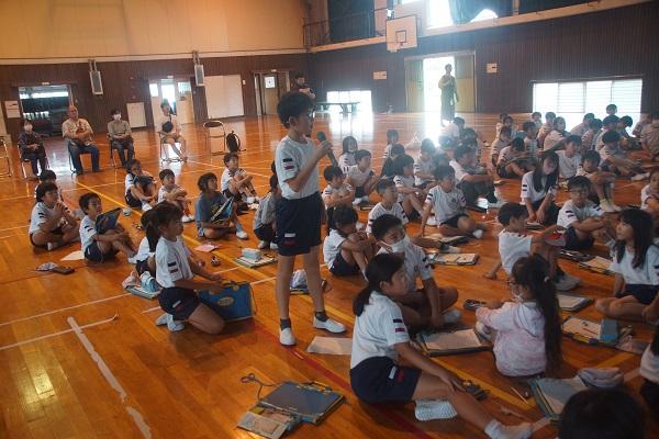 講話のあとに、子どもたちからの質問に答えていただきました。「当時のサツマイモの味は?」「戦争から帰ってきたお父さんとの思い出は?」「昼間のように燃え盛る町の光景は?」など、子ども一人一人の視点による質問が多くありました。過去の歴史を「自分ごと」としてとらえることができたことをその質問内容から感じました。