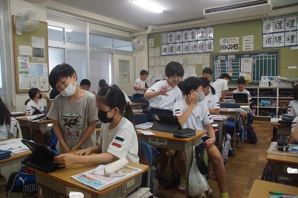 保健委員会は、かぜ予防のために規則正しい生活を送ることを呼びかけるビデオ撮影をしていました。タブレット端末が配付されて、集会に変わってビデオで呼びかけてくれるので、必要性に応じてよりタイムリーなものになりすてきだと思っています。