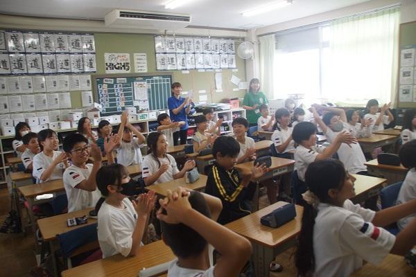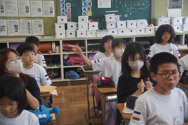 4年生の英語活動では、道案内の基礎となる方向指示の学習をしていました。本当は右左は難しい英語ですが、授業の楽しさが上まわり、そんな難しさもあまり気にしていないようです。ちゃら、へっちゃらのミュージックが頭を駆け巡ります。