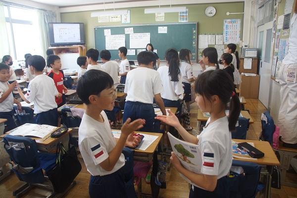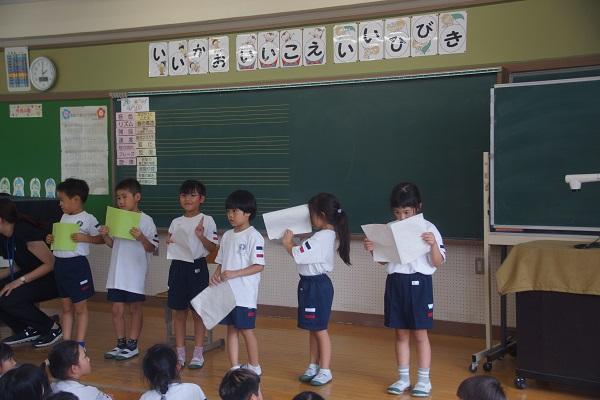 子どもたちも意欲的です。先生に代わって、3つのヒントを出す役も多くの子が挙手し、チャレンジしてくれました。私ならビビってしまいそうですが、このチャレンジスピリッツがとてもすてきです。この子達はグローバル社会でも、ちゃんと自分の意見を言ってくれるものと期待が膨らみます。