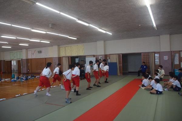 最初の種目は、磯辺っ子の大好きなドッジボールを学級対抗で行いました。女子の投げるボールが速く、強いことにいつも驚かされます。果敢にボールをキャッチし、アタックする姿はほれぼれします。技術が高いだけに、勝負は真剣そのものですが、6年生のよいところは、勝敗の決着がついたあとで、互いたたえ合うこと、ノーサイドの精神が根付いてます。とてもさわやかです。