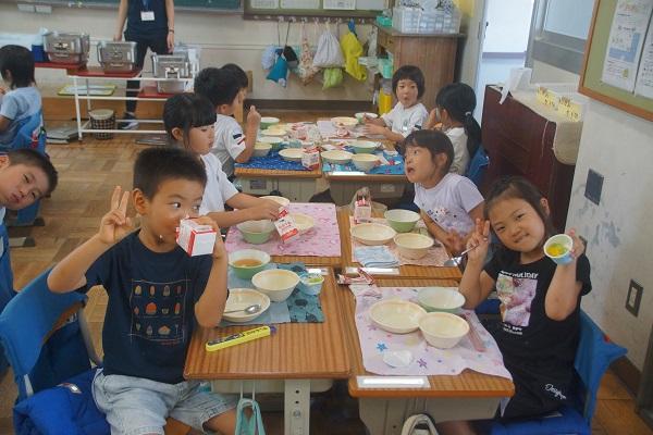 1年生は、明日の保育園年長児との交流が楽しみで仕方なく、元気いっぱいの様子です。その元気の源となるのは、給食をおいしく、モリモリ食べていることのようにも感じています。