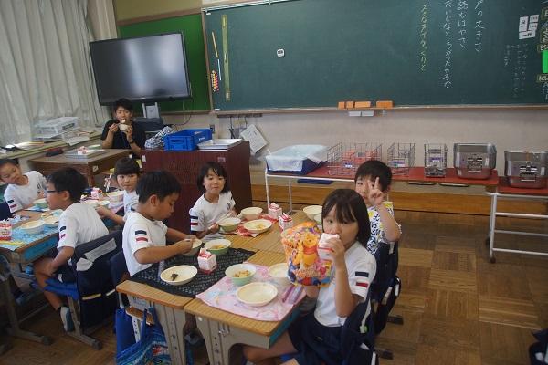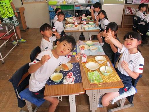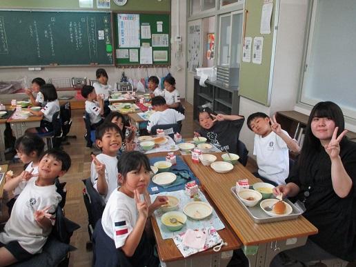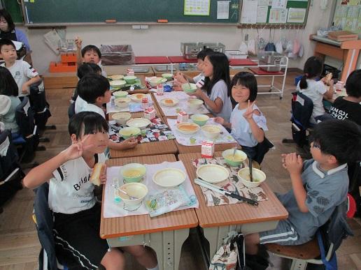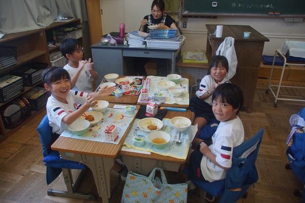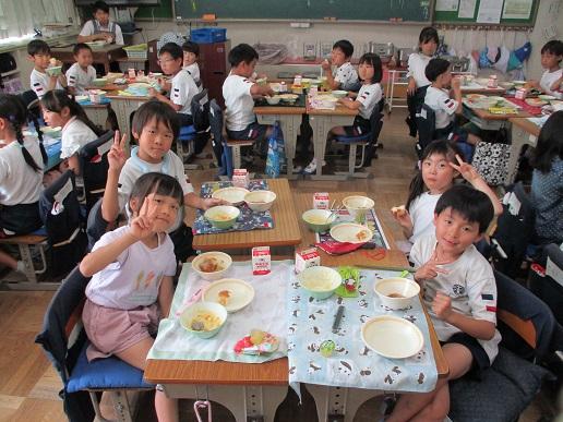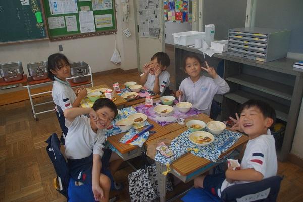 今日は誤って、給食の写真を消去してしまいましたが、給食風景の1年生の笑顔から、スペシャルランチのおいしさが十分伝わることと思います。私の失敗をp補って余りある、1年生の子どもたちの表現力をありがたく思っています。また、こんな素敵な給食のメニューを考えてくれているる栄養教諭や給食協会、そして調理をしてくださる曙給食センターの方々に感謝しています。