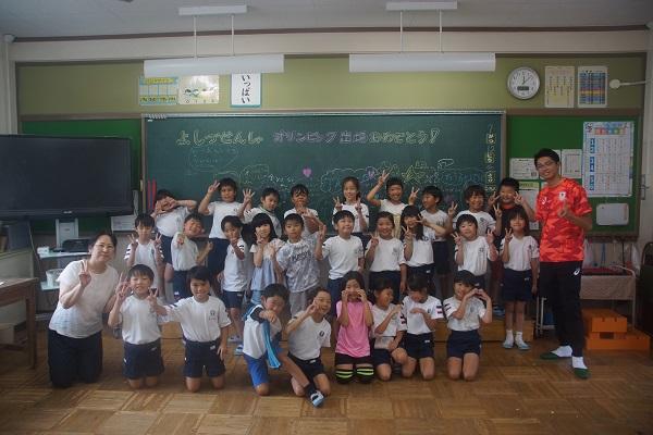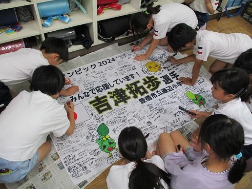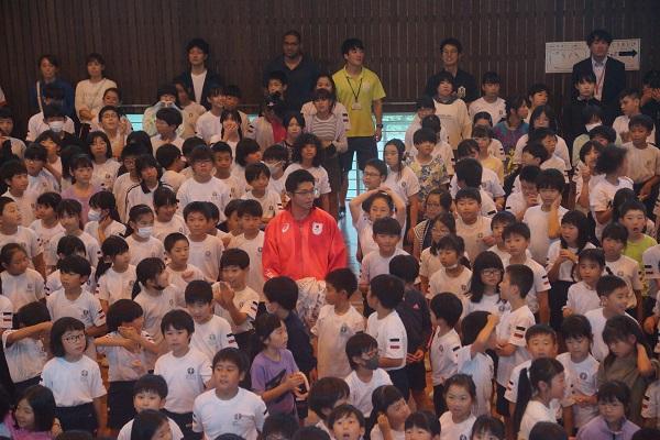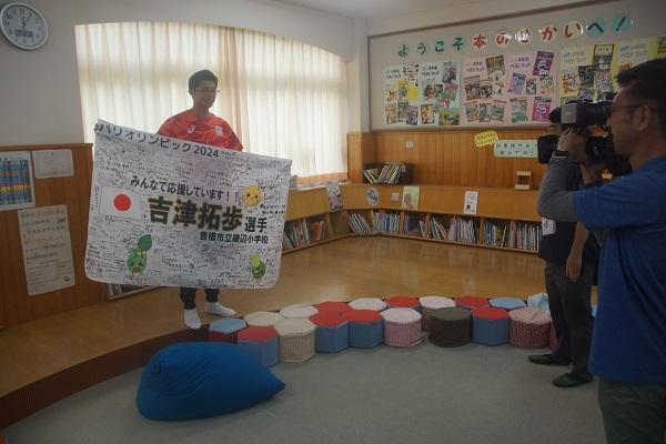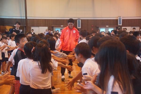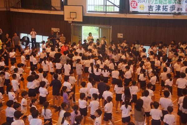 東京2025世界陸上の混合4×400mリレー日本代表チームメンバーとして出場し、日本新記録達成、決勝進出8位入賞の偉業を達成するとともに、男子4×400mリレー日本代表チームメンバーとして出場した、磯辺小出身吉津拓歩選手が、10月31日(金)に磯辺小に来ていただきました。世界陸上8位入賞をお祝いするとともに、「愛知・名古屋2026アジア競技大会」の出場を目ざす吉津拓歩選手にエールをお届けする会を開催しました。これからも世界の舞台で活躍する吉津拓歩先輩とともに「夢に向かって」走り続けていきたいと思います。