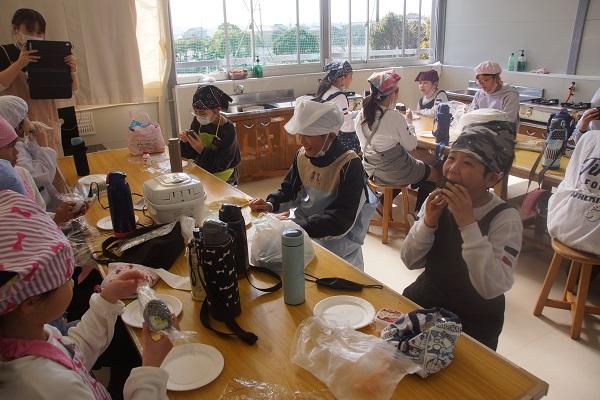 「うまい!おいしい!」と自分で握ったおにぎりをほおばっていました。すてきな笑顔です。