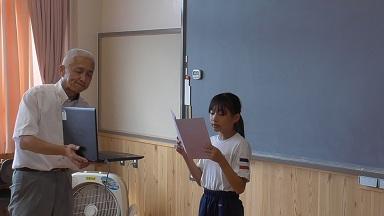 一つ目は、学級代表のサポートです。私は一学期、学校代表をやってきてクラスをまとめることの難しさを知りました。授業が始まる前にみんなに声掛けをして静かにしてもらったり、先生から頼まれたことをみんなに大きな声で伝えたりして、なんとか自分なりにクラスをまとめることができました。この経験をいかして、次の学校代表の子がこまったら、手助けができるように頑張りたいでです。