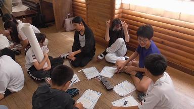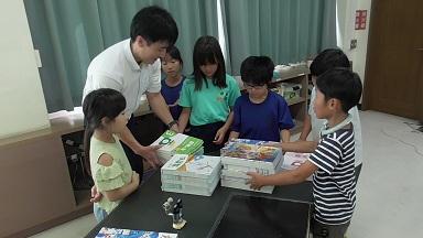 今日も13名の4~6年生のボランティアが集まり、たけのこの準備を進めてくれました。まずはゲームの試し打ちと係決めを行います。