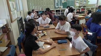 6年生は思い出をシェアしてました。さすが語りも上手です。久しぶりでしたが今日も中身の濃い楽しい学校生活となったようです。外は暑すぎですが。