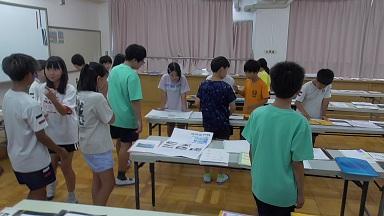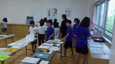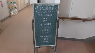 体育館工事のため、今年度の「夏休み作品展」は、南校舎の3教室を使用して行っています。体育館と違ってエアコンもあるので、涼みながら子供たちの作品をじっくり、ゆっくりご覧いただければ幸いです。