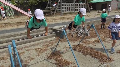 うんていにチャレンジする子どもたちを見かけました。学年が上がるにつれ、一つとばしや横渡などの技もできるようになり、たくましさを感じます。身軽な子どもたちがうらやましいです。