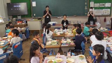 今日の給食は、いつもの牛乳に加えて、えだまめ、米粉コロッケ、とりだんご汁に、ご飯に味付け海苔でした。大人にとっては、夕食にとっておきたい魅力的なメニューでしたが、なんでもおいしくいただける磯辺っ子にも、魅力あふれる給食となったようで、えだまめじゃんけん、海苔じゃんけんが各教室で行われていました。「海苔にはノリがいい子どもたちです。」