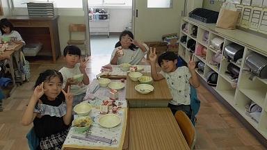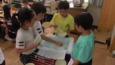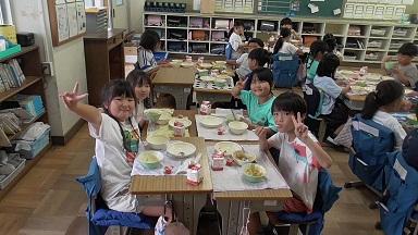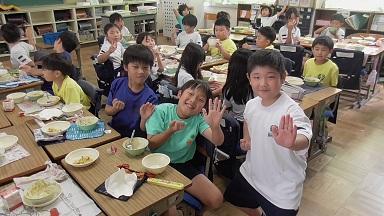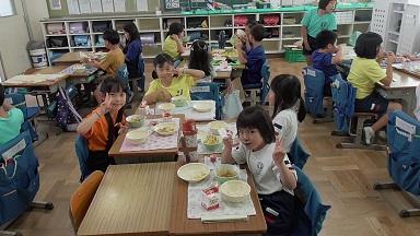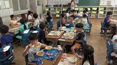 2学期の給食がスタートしました。1年生もいつの間にか、10分以内でスムーズに準備、配膳が行えるようになりました。すごい成長だと感じています。2学期からは、牛乳パックをつぶすのでなく、開いてたたんで、さらにコンパクトにリサイクルに回すそうです。さすがです。