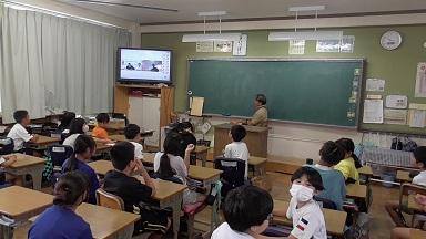 2学期は、熱中症予防のため、当初の予定通り、リモートで2学期始業式を行いました。中継現場の小会議室には、表彰披露をさせてもらった子供たちに引き続き残ってもらいました。